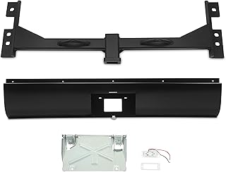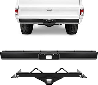 ALMULOO 2 Inch Hidden Hitch and Roll Pan Kit Compatible with 1973-1987 Chevy Chevrolet C10 C20 Pickup Rear Bumper Roll Pan with Trailer Hitch License Plate Frame LED Light Steel Powder Coated Black
